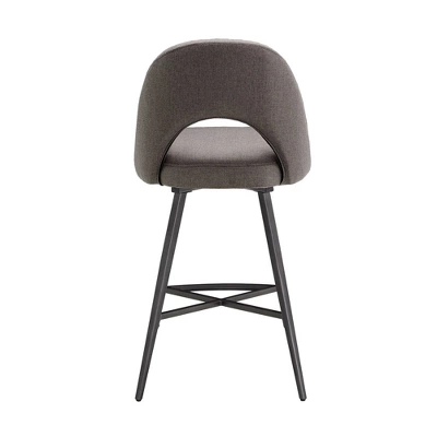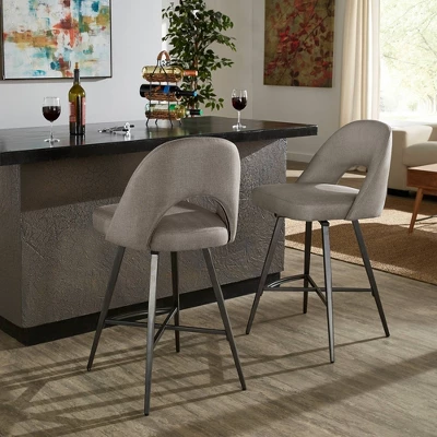 Add some statement-making, contemporary style to your kitchen or bar area with the iNSPIRE Q Ragan 24″ Metal Fabric Swivel Counter Height Chairs (Set of 2). This set displays classic, retro style with half-circle cutouts and thin yet sturdy black metal legs. Dine casually and comfortably, thanks to soft fabric upholstery, plush foam cushioning, and a convenient swivel feature for easy maneuverability.
