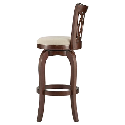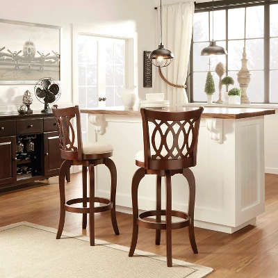 Classic in design, but modern in function, the Parma Swivel Barstool is a tasteful look that fits in with both contemporary or traditional interiors. This stylish piece of home furniture looks great at your bar, countertop or kitchen island and offers a sophisticated design that is as dynamic as it is comfortable. Featuring a swivel mechanism, a foot rest, a durable rubberwood construction, a latticed backrest and a padded seat.