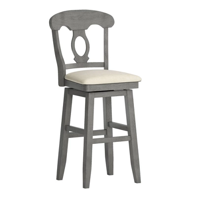 Turn your home into a cottage in the French countryside with the addition of the South Hill Napoleon Back Wood 29″H Swivel Bar Height Chair from iNSPIRE Q. Your guests will be charmed by the Napoleon-styled back of the chair as they sit comfortably on linen upholstered seats. Conversations can go on forever effortlessly thanks to the swivel feature. Founded on resilient rubber wood for stability, this rustic-inspired chair displays a beautiful distressed finish in a variety of colors to suit your unique design taste.