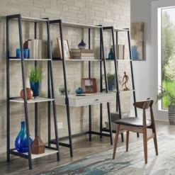 3pc Neveah Marble Ladder Desk And Bookcase Set Matte Black – Inspire Q