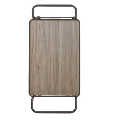 The Keene Bronze Finish and Wood Double-Cross Bar Cart from Inspire Q is sure to steal the show at your next party with its modern style and state-of-the-art versatility. A sturdy metal frame lends a slightly industrial vibe that contrasts from the two wooden shelves in beautiful fashion. Two smooth and sizable shelves can store all your bar essentials and comes in a beautiful walnut finish for a touch of rustic charm. This transitional bar cart is founded on caster wheels and has metal handlebars on top so you can entertain in every room of your home.