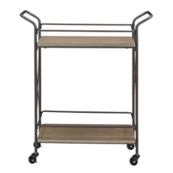 Keene Bronze Finish And Wood Double Cross Bar Cart Bronze/Walnut – Inspire Q