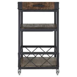 Raddatz Metal X Frame Bar Cart With Wood Shelf Bronze/Walnut – Inspire Q