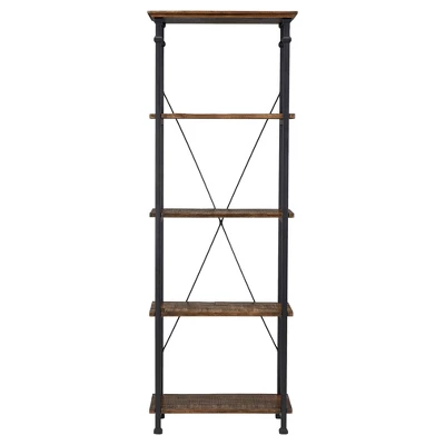 Complete the look of your space with the Ronay Rustic Industrial Etagere Bookshelf from Inspire Q. This industrial-style bookshelf features a sleek black metal frame that’s contrasted by the painted wood shelves. Use this four-shelf bookshelf in your living space to display accent pieces, magazines and books or place it next to your home bar to hold drinkware, cocktail necessities and more.
