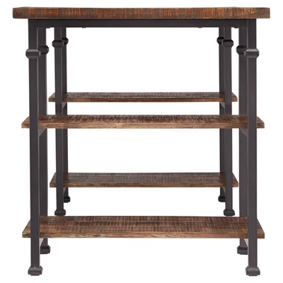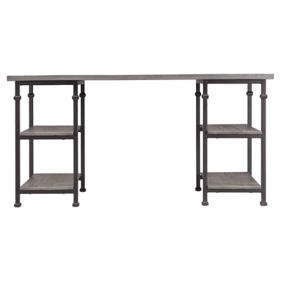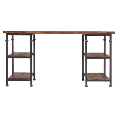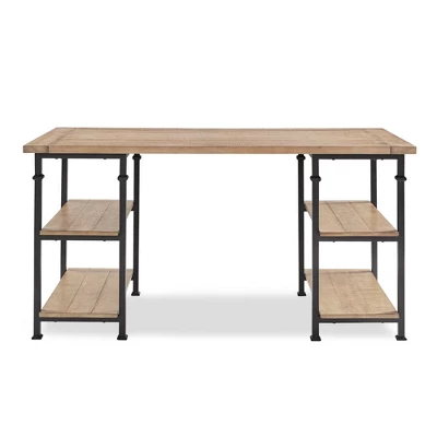 Add some chic, industrial styling to your home office or work space with the ronay rustic industrial desk by Inspire Q. Rustic panelled wood shelves and top set the tone for charming and unique style, while the sleek powder coated black metal frame effortlessly compliments the look. With four shelves your office supplies and work neccesities have a secure spot to call home.