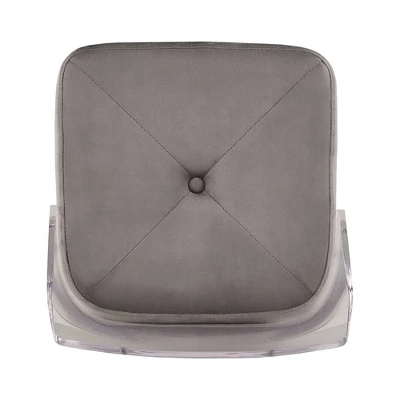 - Crafted with acrylic, metal, fabric, foam, and velvet