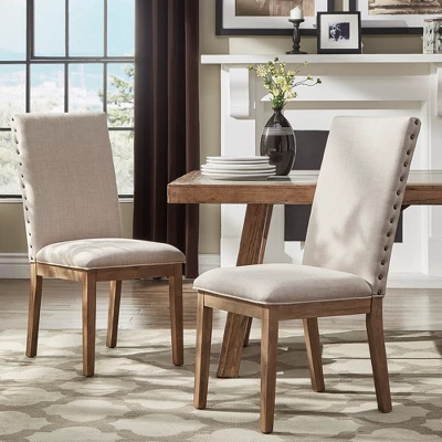 Find your traditional style dining room with the Amiford Nailhead Accent Dining Chairs from Inspire Q. The upholstery material gives these chairs a polished finish while the nailhead trim around the backrest creates a touch of shine. Complete your dining table or breakfast nook with these armless dining chairs, or mix in with your other chairs to create a look that’s all your own.