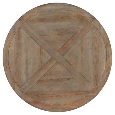 Inspired by rustic living, the Sierra Round Dining Table made from Wood by Inspire Q brings elegance to your dining space. The trestle base is complemented by the large round top with quartered plank detailing. The rustic pine finish wood benefit from light distressing and a patinaed whitewash finish that gives your space a vintage feel. Constructed with a X-cross base, this table would complement a country or rustic home style. Table accommodates up to 6 seats and is easy to clean. Pair this table Parson chairs for a classic farmhouse look!